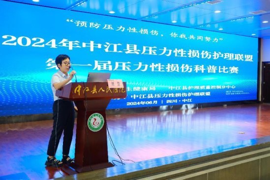 近期,中江县卫生健康局及中江县护理质控分中心主办,中江县压力性损伤护理联盟承办的第一届科普比赛暨压力性损伤专题讲座在中江县人民医院仁爱厅召开。活动由中江县人民医院肾内内分泌科护士长、伤口造口专科护士周敏主持,主题为“预防压力性损伤,你我共同努力”。全县医疗机构200余名护理人员参加活动。