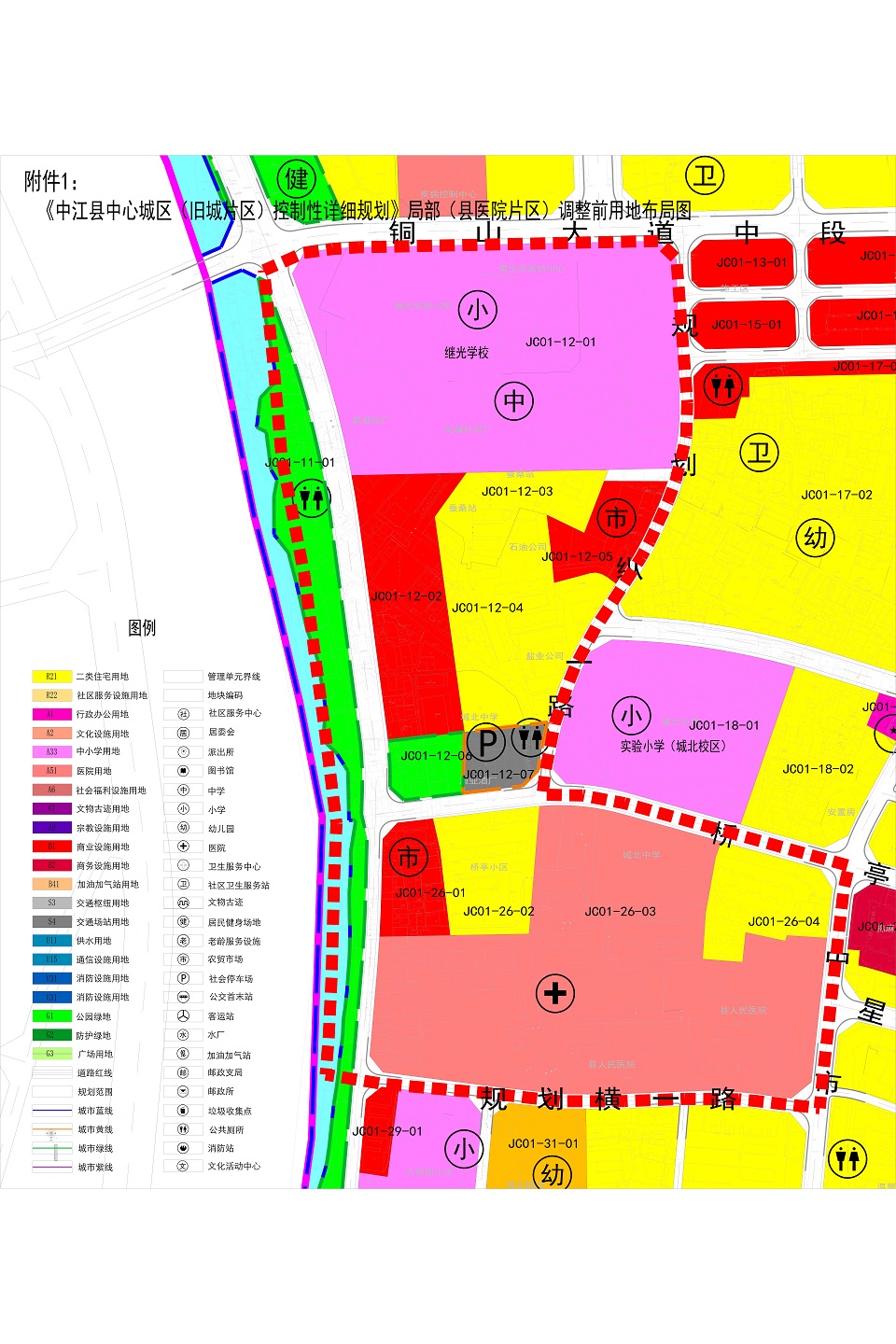 1.《中江县中心城区(旧城片区)控制性详细规划》局部(县医院片区)调整前用地布局图