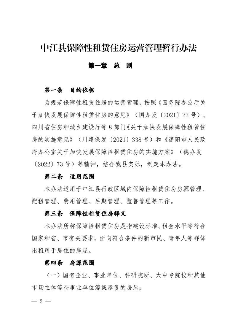 关于印发《中江县保障性租赁住房运营管理暂行办法》的通知